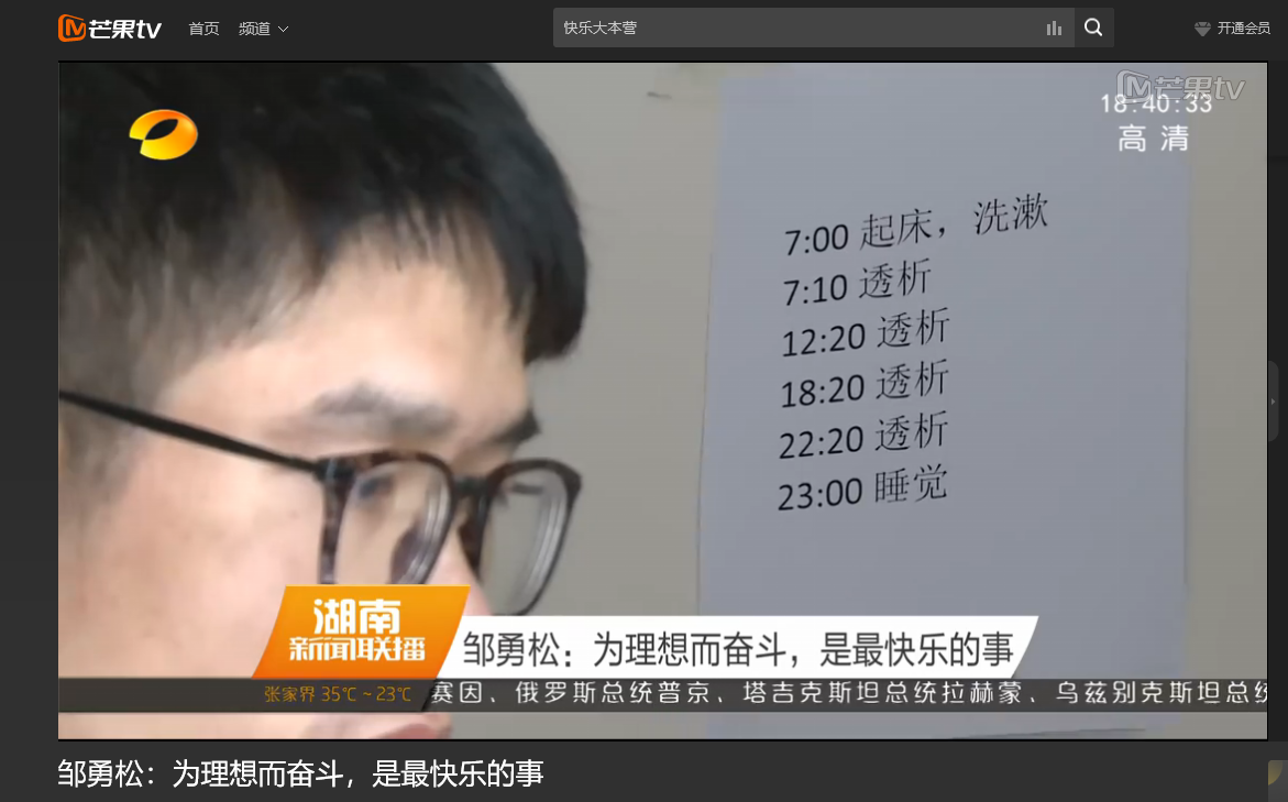 湖南卫视 6月10日新闻联播,以《邹勇松:为理想而奋斗,是最快乐的事》为题对威廉体育计算机与通信工程学院15级研究生邹勇松进行了报道。