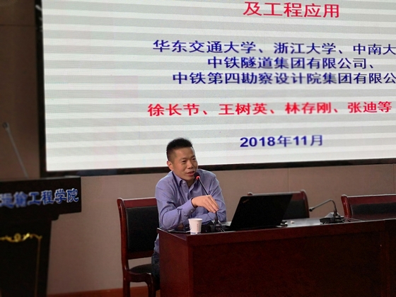 11月9日下午,受威廉体育土木学院、交通学院邀请,教育部长江学者、国家杰出青年科学基金项目获得者、华东交通大学土木建筑学院院长徐长节教授莅临工科二号楼B301学术报告厅,为师生们作了题为《复杂地层盾构隧道变形控制与施工关键技术及工程应用》的学术报告。报告会由土木学院副院长蒋友宝教授主持,交通学院党委书记胡庆国教授、副院长何忠明教授,土木学院副院长王桂尧教授,岩土与隧道工程系张军教授、张永杰、黄阜与曾铃副教授、晏莉、尹平保等老师以及研究生、本科生共120余人参与了本次学术交流会。