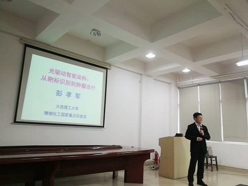 会上,彭孝军重点阐述了“癌症诊疗用染料”在肿瘤成像与治疗领域的前沿应用研究;其主导研发的染料能很好地显现出肿瘤的准确位置和大小,对肿瘤的光动力学治疗有很好的疗效。他在讲座上还就DNA测序染料、血栓光动力治疗、柔性显示材料等原始创新表达了更多的畅想和展望。