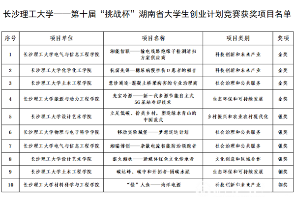 “挑战杯”大学生创业计划竞赛是具有导向性、示范性、实践性和群众性的高校权威赛事,是共青团组织服务青年师生健康成长成才的传统品牌工作。今年,省内共有15293个项目报名参赛,覆盖全省高校青年师生超过20万人次,104所高校的667个项目入围终审决赛,参赛高校和参赛项目均创历史新高。威廉体育电气与信息工程学院《湘能智联——输电线路绝缘子检测清扫方案供应商》、化学化工学院《抗菌先锋——糖尿病慢性伤口患者的福音》、土木工程学院《慧诊通途——混凝土桥梁病害的专业治理商》和能源与动力工程学院《光宝冷源——新一代多源节能自主式5G基站冷却技术》4个项目荣获省赛金奖,《立足低碳、扮美乡村,塑造绿水青山的中国范式》等4个项目获省赛银奖,《“镁”人鱼——海洋电源》等2个项目获省赛铜奖。