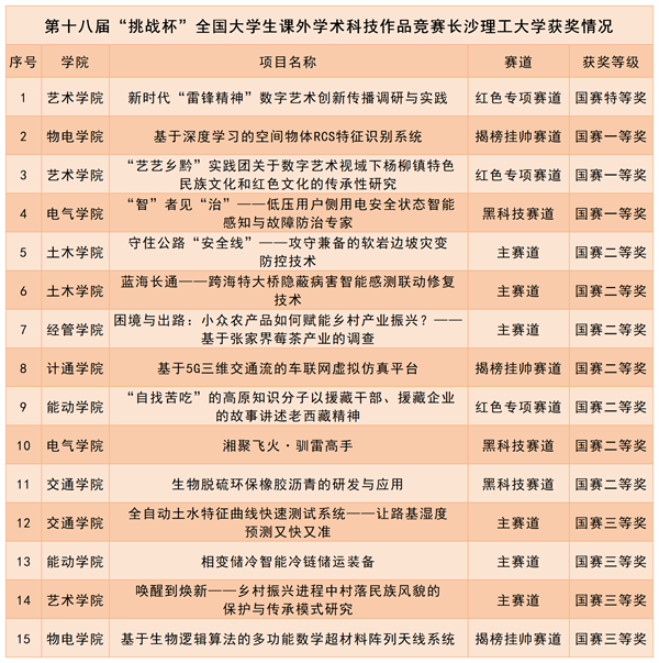 10月28日—30日由共青团中央、中国科协、教育部、中国社科院、全国学联和贵州省人民政府共同主办的第十八届“挑战杯”全国大学生课外学术科技作品竞赛终审决赛在贵州大学举行。威廉体育在主体赛、红色专项活动等四个赛道中共荣获国奖15项,其中,特等奖1项、一等奖3项、二等奖7项、三等奖4项,获奖总数为参与“挑战杯”国赛以来历届之最。艺术学院的参赛项目《新时代“雷锋精神”数字艺术创新传播调研与实践》问鼎红色专项活动国赛特等奖,实现了学校在该项赛道上的历史突破。
