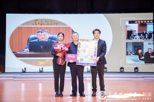 为表达敬意,报告会前,学生代表特地为陆佳政院士送上了鲜花、自制的精美画册与祝福画框。