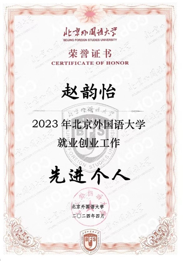 2024年4月25日,学校隆重召开2024年就业创业工作推进会,总结2023届毕业生就业情况,就2024届毕业生就业创业工作进一步部署,并对在就业创业工作中表现突出的集体和个人进行表彰。贝博bbet官网首页在本次表彰中脱颖而出,荣获2023年度“就业创业工作先进集体”称号,同时,赵韵怡老师获评校级“就业创业工作先进个人”称号。