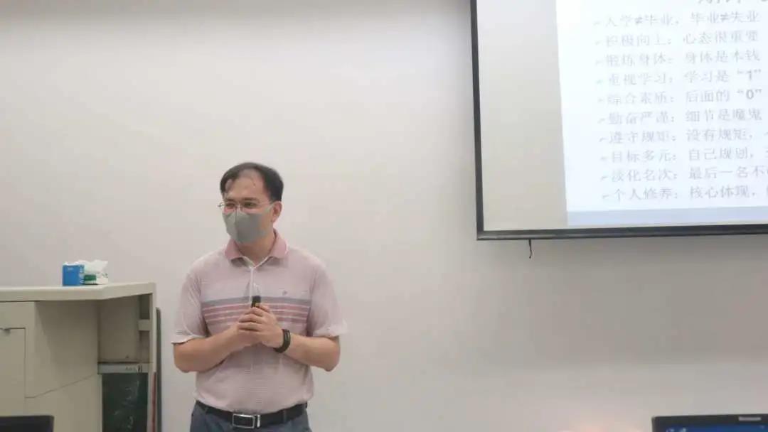 兰老师着重强调了北外的红色基因,北外由延安走到北京,刻在骨子里的红色基因是我们每个北外人的骄傲。之后,他介绍了北外知名校友沙广辉、洪雪青等人,并且鼓励同学们都像前辈们学习,在大学期间努力提升自己,多多参加各类活动,发出北外人的光和热!对于学习,学院致力于培养国际视野,高层次、复合型计算机专业人才。希望同学们进入北外后,仍需要努力学习,巩固英语能力、提升国际交流能力,练就扎实的专业基本功,也积极参加拔尖计划、辅修,修读学分。对于生活,他要求同学们平时多锻炼身体,保持健康的身体,重视疫情防控,出门在外要记得戴口罩,勤洗手。他强调在校期间,非必要不出校。此外,还要做好垃圾分类,维持宿舍文明。进入大学后,同学们要学会独立自主、遵守规则,努力融入校园,提高社交能力。