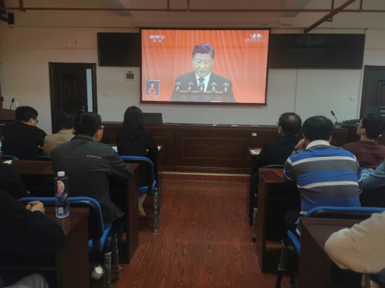 会议室内广大师生聚精会神地聆听习近平总书记振奋人心的报告,不时响起阵阵掌声。会后学院党总支理论学习中心组召开学习扩大会议,各党支部、学生代表召开学习讨论会,深入学习习近平总书记在中国共产党第二十次全国代表大会上的报告。大家纷纷表示,一定要认真学习领会、贯彻落实习近平总书记重要讲话精神,全面贯彻习近平新时代中国特色社会主义思想,弘扬伟大建党精神,自信自强、守正创新,踔厉奋发、勇毅前行,为全面建设社会主义现代化国家、全面推进中华民族伟大复兴而团结奋斗。