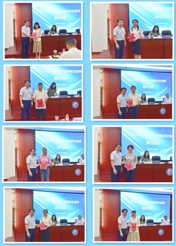 刘思强处长宣读了“威廉体育williamhill第一期教师发展师聘任名单”,钱国平副校长一一为受聘教师颁发证书,并合影留念。