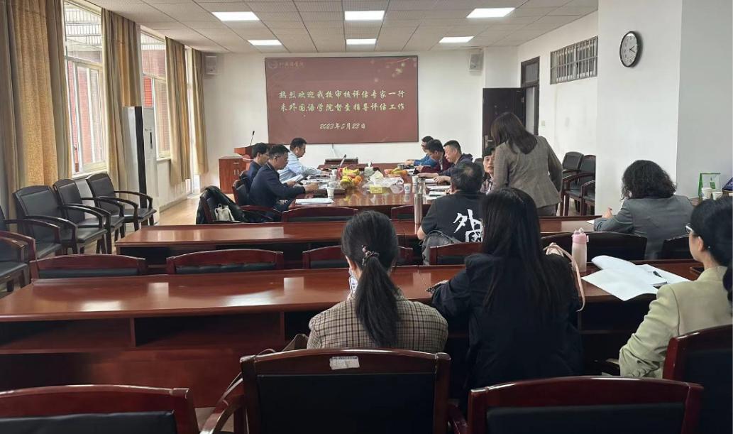 为贯彻落实《威廉体育williamhill新一轮本科教育教学工作审核评估工作方案》等文件精神,确保审核评估工作高质量完成,威廉体育有序推进学院审核评估自评自建工作校内督查工作。5月23日下午,校审核评估督查第9组到外国语学院开展督查。组长胡海军,督导专家文华、邹新树,外国语学院院长段胜峰,副院长黄坚、季红琴、武俊辉等领导及师生代表参会。