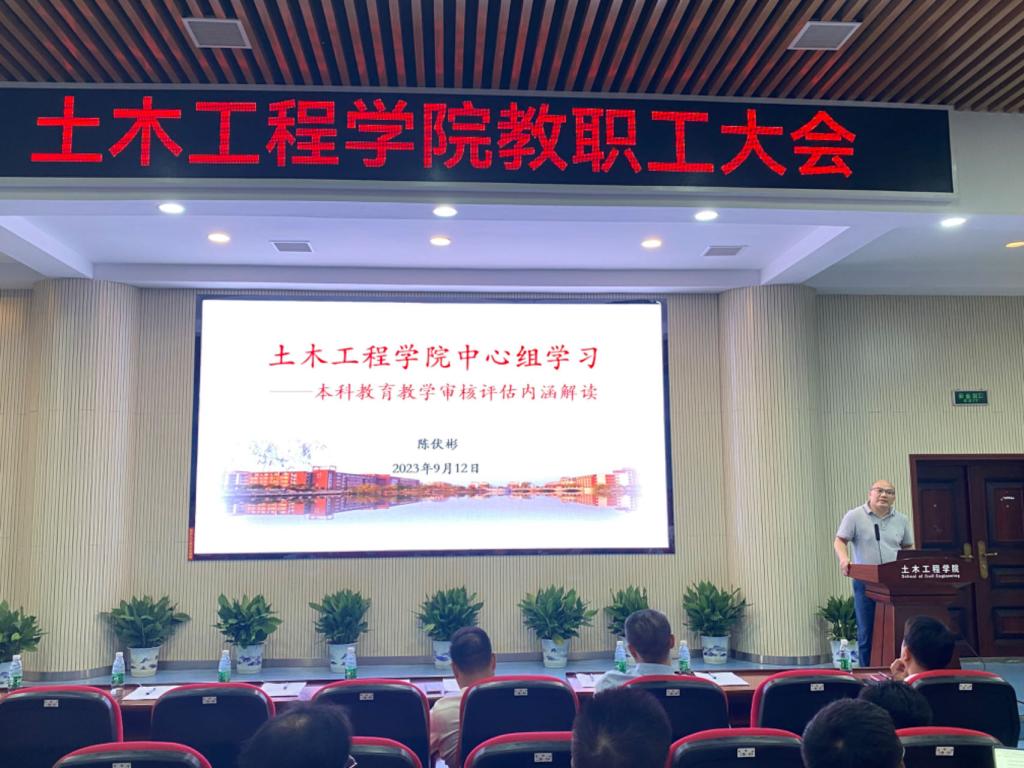 9月12日下午,土木工程学院在工科二号楼B302召开本科教育教学审核评估主题大会,全体教职工参加了会议。