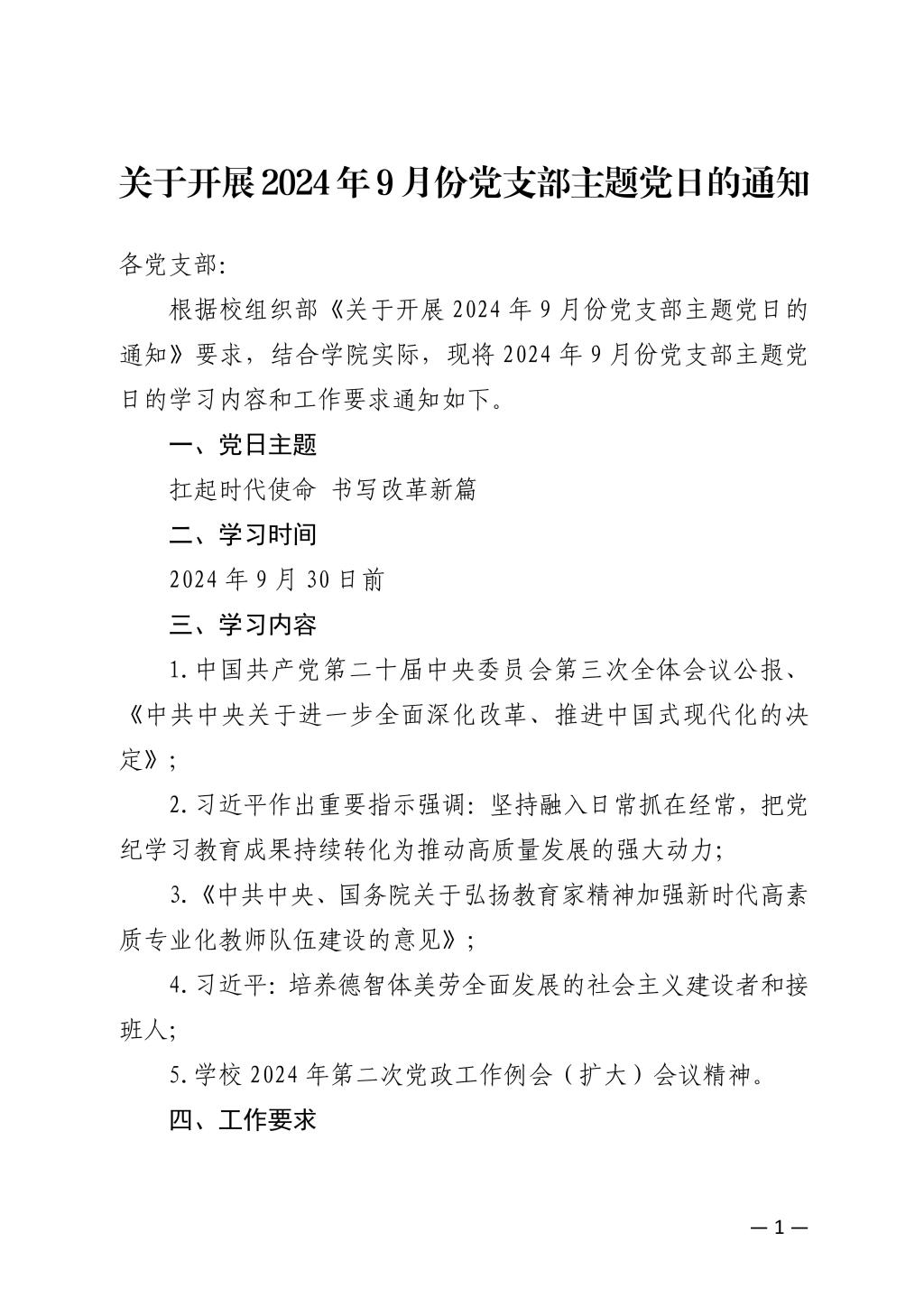 关于开展2024年9月份党支部主题党日的通知