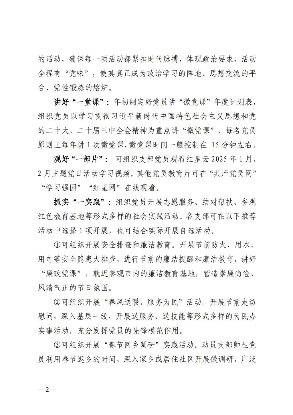 关于开展2025年1月份、2月份党支部主题党日的通知