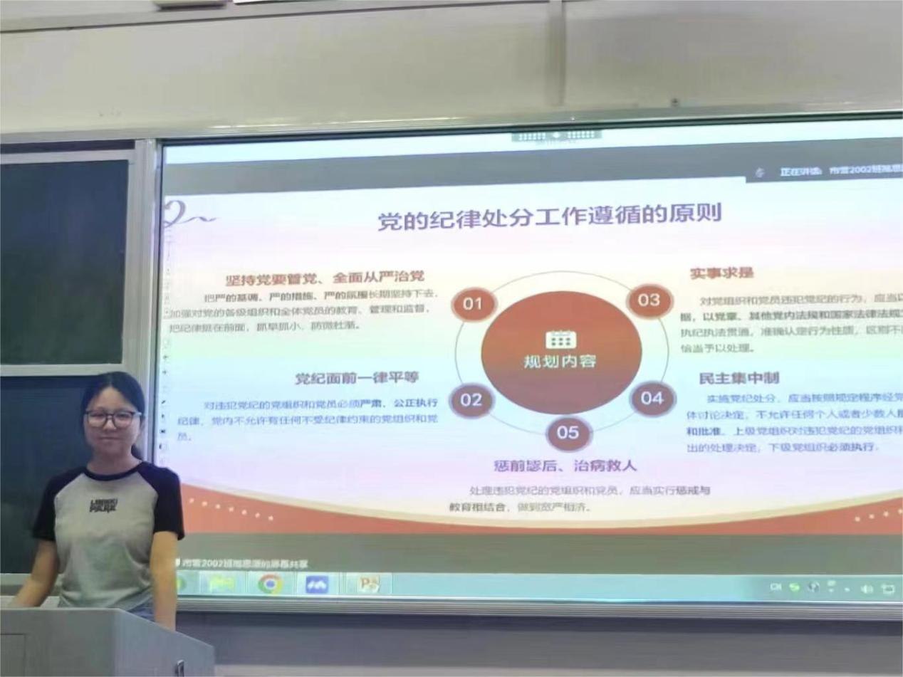 各支部在支部书记的带领下深入学习了《中国共产党纪律处分条例》和习近平总书记关于党的纪律建设的重要论述,并围绕党的纪律条例进行微党课分享,支部党员们深刻认识到遵守党的纪律的重要性和必要性。其中,人资支部党员刘顺强同志认为纪律严明是党的光荣传统和独特优势,是我们党不断走向胜利的坚强保证,全体党员要把衡量标尺印刻于心,用党规党纪校正行动。通过观看《中国共产党人精神谱系之苏区精神》《永远吹冲锋号》等党纪学习教育视频,支部党员了解了违纪行为的危害和后果,进一步增强了党员的纪律意识和规矩意识。对此,金融支部副书记王雨婷指出每一位党员都要做到遵纪守纪,明底线,知敬畏,奋力书写中国式现代化的青春篇章。最后,各支部书记强调,全体党员要进一步加强党性修养,严守党的纪律,维护好党的纪律的严肃性和权威性。