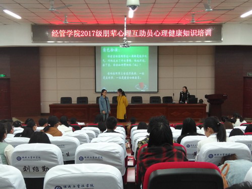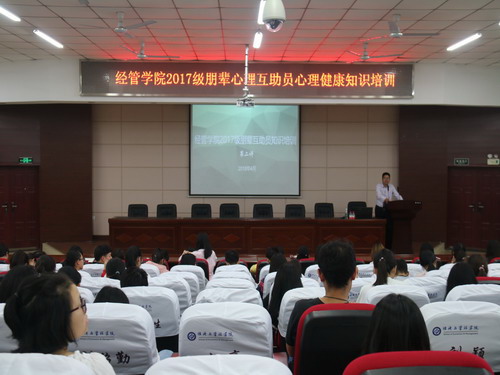 为提升朋辈心理互助员心理素质与工作技能,在学校的指导和学院的精心组织下, 2018年4月17日-4月19日19:30-21:00,经管学院2017级朋辈心理互助员心理健康知识培训于文科楼A200顺利举行。我院共计有189名朋辈心理互助员参与了本次培训。