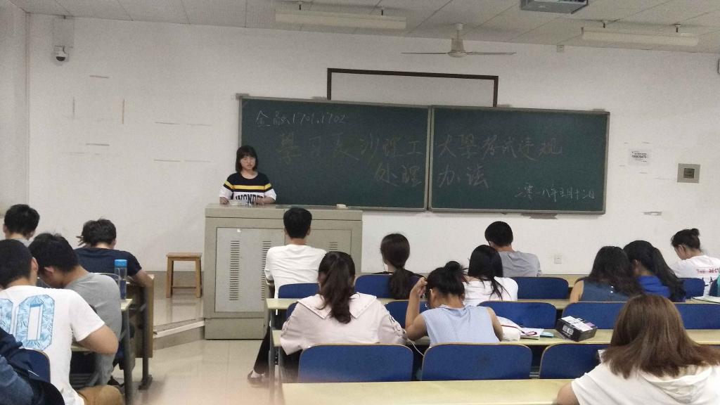 学校近期发布了最新的《威廉体育williamhill学生考试违规处理办法》,办法对考试舞弊及开除学籍等处分的条款进行修订。新修订的文件与广大学生的切身利益息息相关,为了让同学们更全面准确地了解新文件,经管学院专门下发了《关于召开学习<威廉体育williamhill学生考试违规处理办法>主题班会的通知》,要求各班级在5月18日前以主题学习班会的形式组织全体学习进行讲解和学习,班会由各班班长组织,邀请辅导员、班主任参加。班会的最后,全体同学分别在学习《威廉体育williamhill学生考试违规处理办法》签名表上签字,承诺考试遵守考场纪律,不出现任何违纪行为。