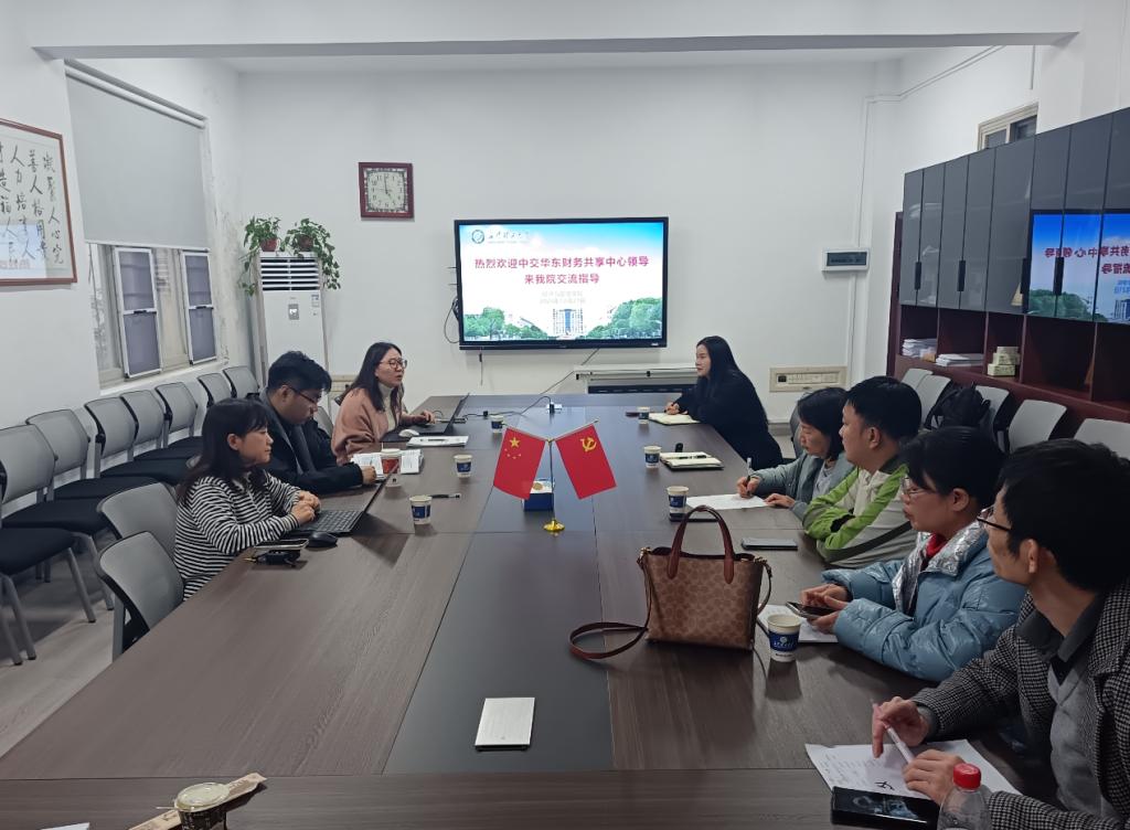 12月21日下午,中交华东财务共享中心总经理助理张丹丹一行到我院交流指导智能工程财会校企合作。中交华东财务共享中心业务总监华瑾、合规数字部信息化负责人吴忱,我院财务与会计系主任朱锐、副主任姚慧林、大数据财务决策课程组组长李凤莲老师等教师代表参加会议。会议由朱锐主持。