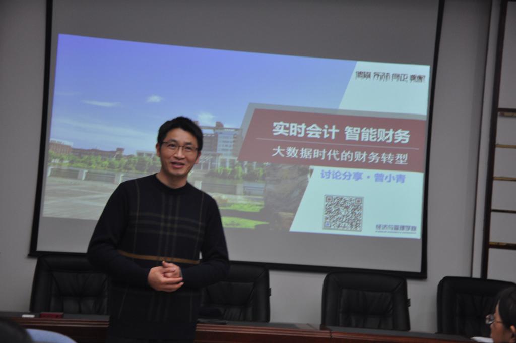 首先,我系邀请曾小青博士作了“大数据时代的财务转型”的学术讲座。曾小青博士从大数据时代的财务变革、财务共享服务、由财务会计到管理会计、财务智能化等四个方面,探析了数字化时代企业财务管理转型的路径与策略,提出了大数据处理框架、数据仓库、数据挖掘工具、编程语言、挖掘算法等大数据分析技能图谱。