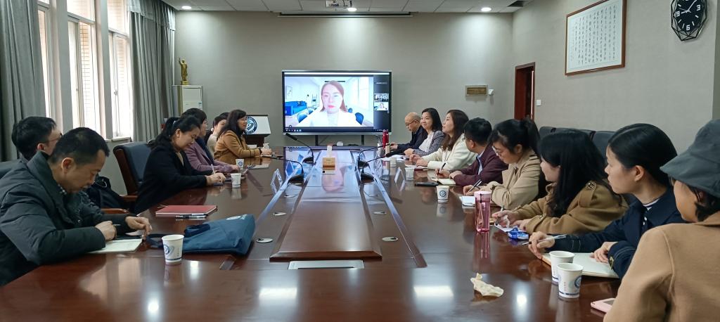 肖红英介绍了天职国际会计师事务所(特殊普通合伙)的基本情况,主要业务板块特色,并就可能的校企合作空间展现了积极的合作意愿,希望能借此机会进一步加强与我院在实践教学、案例开发和科学研究等领域的合作。李晶晶经理介绍了政务咨询业务板块的发展情况。天职学院负责人王珏通过现场视频连线介绍了天职学院国际高端财经人才校企合作联合培养方案。