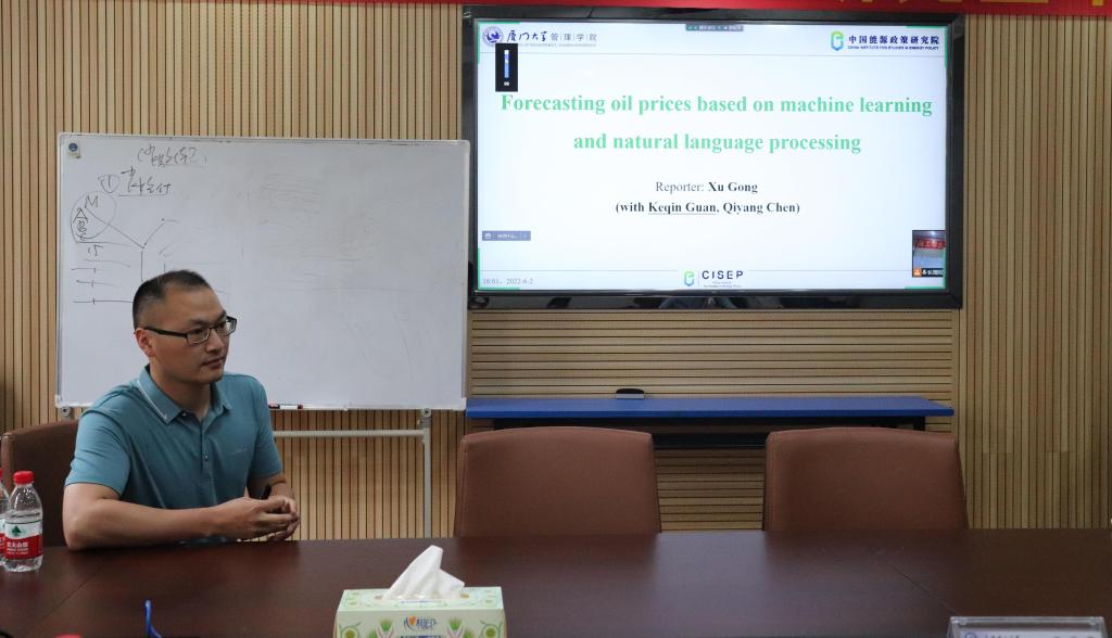 2022年6月2日下午4点,厦门大学管理学院龚旭副教授于金盆岭校区七教204为我院师生开展了题为“Forcasting oil prices based on machine learning and natural language processing”的讲座。本次讲座由副院长刘坚教授主持,经管学院副院长彭新宇、我院青年老师和研究生参与讲座。