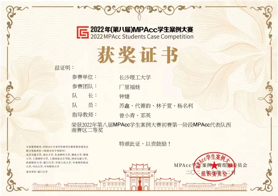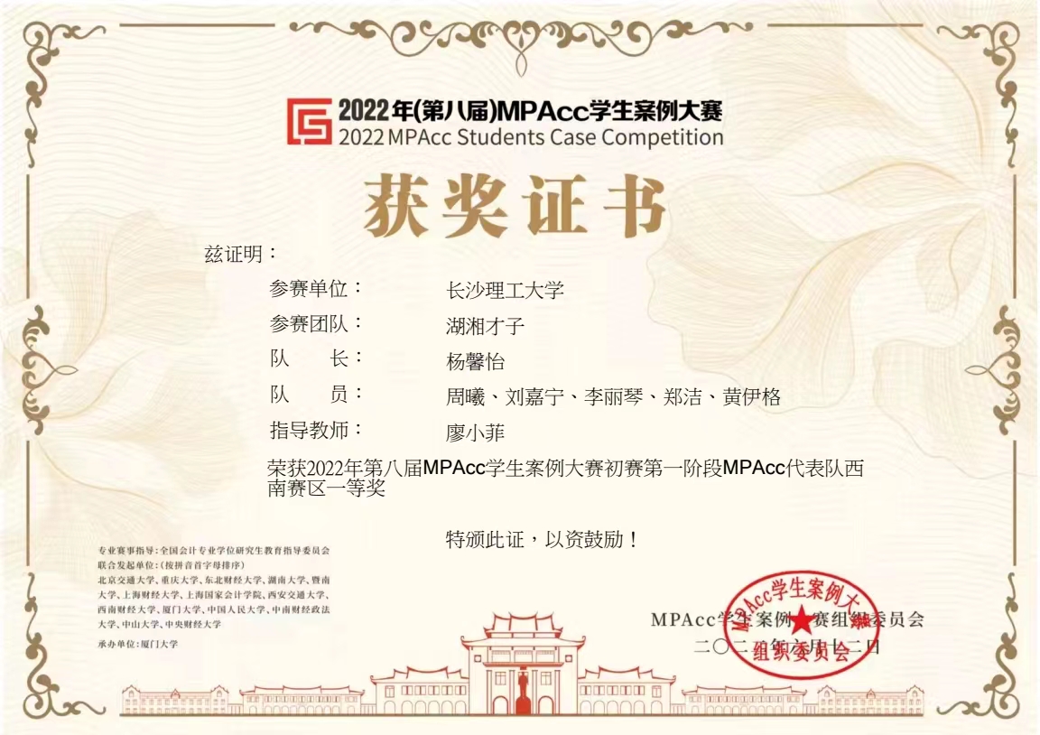 本次大赛西南赛区共535支队伍报名,威廉体育williamhill属于西南赛区参赛单位,学生们参赛踊跃,共有22支队伍报名。经过校内选拔, 8支队伍晋级参加国赛。最终,有两支队伍在初赛第一阶段中进入全国100强,分别是廖小菲老师指导的湖湘才子队(杨馨怡、刘嘉宁、郑洁、李丽琴、黄伊格、周曦)在西南赛区535支队伍中排名第二,获得初赛第一阶段西南赛区一等奖;曾小青、邓英老师指导的厂里福娃队(钟婕、代菁韵、林子萱、苏鑫、杨名利)在西南赛区535支队伍中排名第四,获得初赛第一阶段西南赛区二等奖。