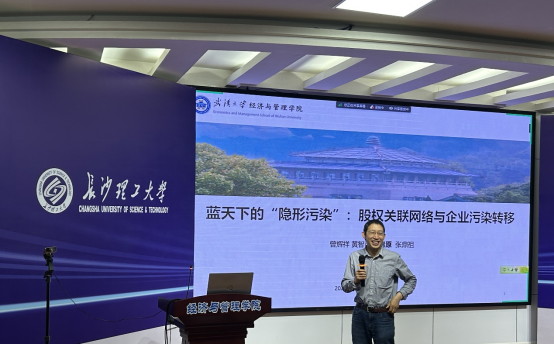 李青原教授作了题为“蓝天下的“隐形污染”:股权关联网络与企业污染转移”的主题报告。李教授从研究背景、研究动机、研究思路、模型设定等方面进行介绍,最后分别对政策制定者、地方政府、企业提出了不同的建议。