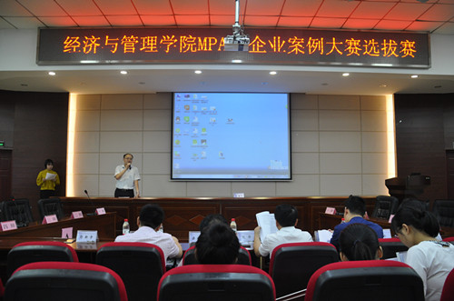 为选拔参加“天健杯”湖南省第三届高校MPAcc企业案例大赛参赛队伍,经济与管理学院于2017年6月27日下午2点在云塘校区文科楼A200举行MPAcc企业案例大赛选拔赛。邀请了威廉体育williamhill城南学院院长赵华教授、天健会计师事务所湖南分所赵娇经理和张恩学经理、郴州市国税局副局长胡巍、马克思主义学院梁建新教授担任此次选拔赛的评委,并由赵华教授担任评委专家组组长。经管学院彭新宇副院长、院长助理王治教授、财务与会计系全体老师以及部分财会专业研究生和本科生全程观摩了比赛。