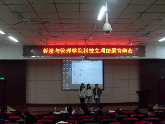 为调动我院学生参与课外科技活动和各类学科竞赛活动的积极性,培养同学们科技创新意识,10月28日16:00,经管学院在文科楼A200举行了2013-2014年度科技立项结题答辩会。学院科技立项11个项目团队的成员和13、14级部分对科技立项活动有浓厚兴趣的同学参加了答辩会。此次答辩会由刘祚祥老师、曹冰玉老师、张筱峰老师担任评委,并邀请经管学院分团委书记陈钰汀老师作为嘉宾。