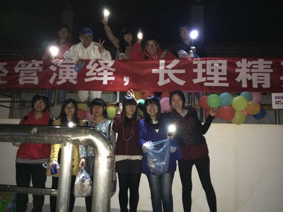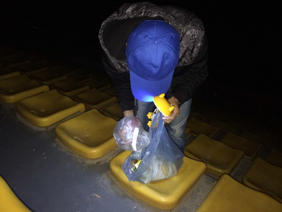 1113日到14日校运会期间,支部成员们每晚610在田径场集合开始环保行动,沿着体育馆主看台的楼梯向上清理座椅和捡拾垃圾。由于天色暗,各党员同志弯腰躬背,拿着手电筒,仔细检查各自所负责区域,努力做到不漏捡一个塑料袋,不忘擦一个座椅,不遗漏任何一个死角。同时,大家相互协助,先做好的帮助还没做完的,负责区域垃圾少的帮助区域垃圾多的,又快又好完成了环保任务。
