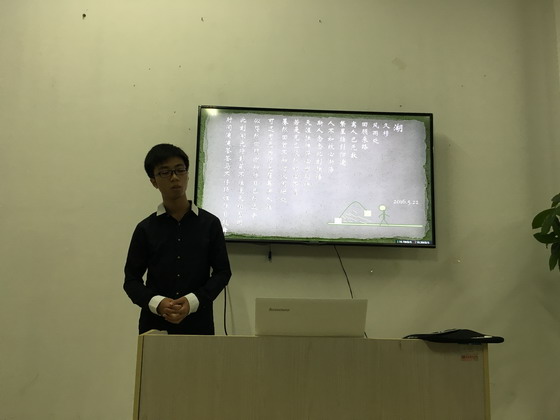 本次大赛分为初赛、复赛与决赛三个环节。初赛一共收到40余副诗歌作品,经过第一轮筛选,共有30副作品进入复赛。复赛由我院辅导员老师参与评选,共选出20副原创诗歌作品进入决赛。决赛环节分为诗歌朗诵、诠释诗意与评委提问三个部分。每位参赛选手精心制作了精美的PPT,配上轻柔的音乐,朗诵并诠释诗歌的内涵与意境,将在场观众带入了或温婉如玉,或大气磅礴的画面中,令人回味无穷。选手们通过宝塔诗这一创造形式,以诗铭志,以诗传情,在诗歌中抒发对过往经历的成长感慨以及对未来的美好期待。最终,通过评委老师评选有12名同学获得奖项,其中经管学院信管1402班聂小发同学的诗歌《湖》获得学院一等奖的殊荣。学院心理辅导员李丽兰老师为获奖选手颁奖并合影留念,并做总结性讲话。李老师介绍了本届“525”主题,肯定了选手们的高质量的诗歌作品,希望大家继续关注“525”,不断认识自我,完善自我。