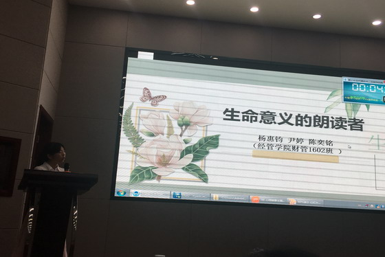 本次决赛共有15组参赛选手,我院信管1501班翁雨婷、财务管理1501班王佳艺、财管1602班杨惠钧、尹婷、陈奕铭三组选手代表学院参赛。决赛前,选手们做了充分准备与多次演练,由学院心理辅导员李丽兰老师精心指导,从而确保了决赛现场的出色发挥。通过五分钟的班会PPT展示与解说,班级心理委员们展示了“绽放生命之美”心理健康主题班会的开展过程与成效。我院三位参赛选手的班会作品特色鲜明,比如翁雨婷的班会《生命如潮,涨落交织》将生命比作潮水,班会流程分为“生命存在、高潮、低潮、平静”四个篇章,既形象又深入,获得了满堂喝彩,并拿到了94分的全场最高分。尹婷小组的班会作品《生命意义的朗读者》,用朗读的元素贯穿班会始终,也给观众留下了深刻印象,以91分的优异成绩位列第三名。王佳艺同学的作品《活出生命的色彩》以89.4分位列第六名。