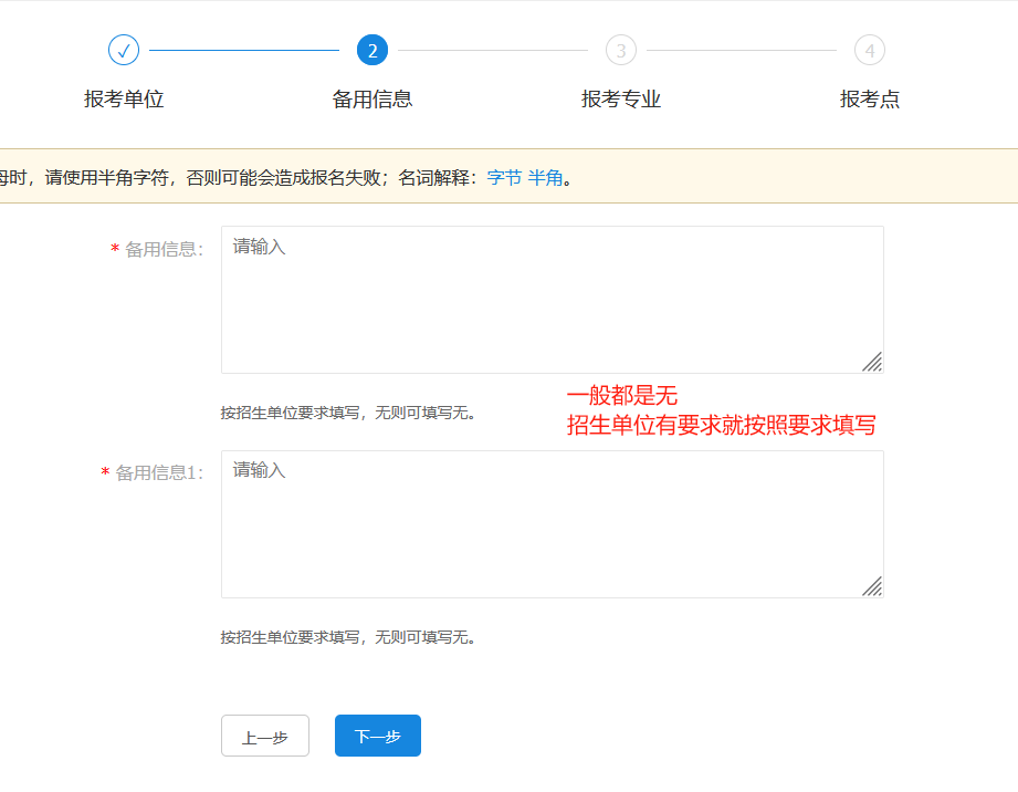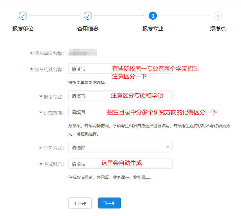 🔸【招生单位】【报考点】【考试方式】等为报考关键信息,在提交报名信息后是不允许修改!
