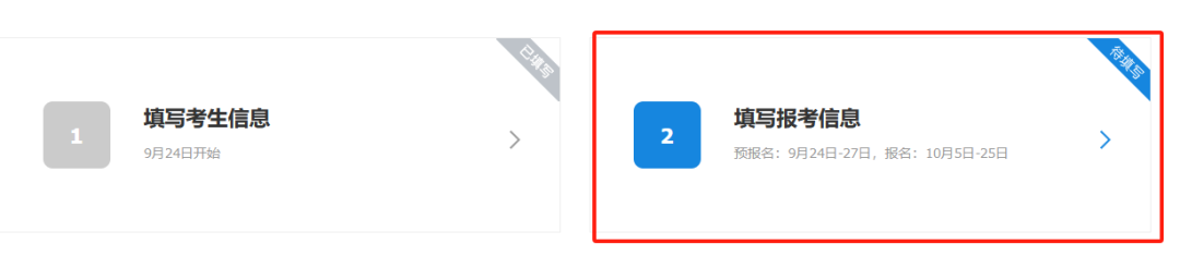 报名分为两个主要流程:填写考生信息+填写报考信息