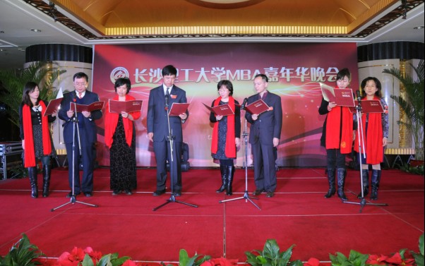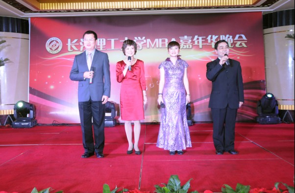 晚会由MBA学员袁丽萍、金洪波、郭劲、牛建军主持。