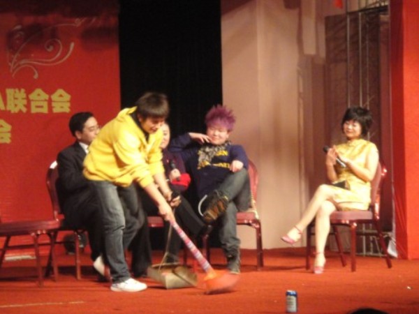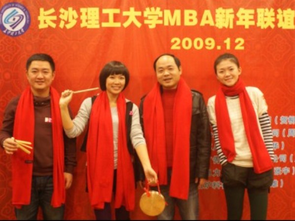 随后09春彭博凌同学献歌《当那一天来临》,09秋表演的‘洗脚城’,09春同学们带的三句半“我们的MBA”,来自兄弟院校湖南大学MBA学员刘星为大家演唱的《梅花引》,08春同学表演的小品‘这么一群人’, 08秋表王玉莹朗诵‘沁园春.雪’与时尚大杂烩个个精彩纷呈,台上台下齐欢乐!