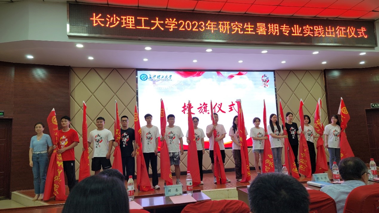 仪式上,校党委委员、副校长胡永乐等与会领导为54支暑期专业实践进行授旗