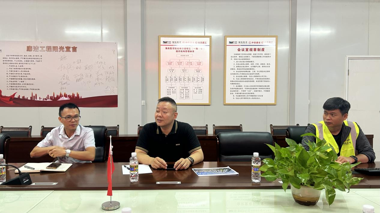 访学团一行到海南医学院桂林洋新校区(一期)项目施工现场了解学习。项目经理薛蓬阳详细介绍了海南医学院桂林洋新校区(一期)项目的的规模、设计理念、施工难点及解决方案等。他强调,该项目不仅是海南省教育事业发展的重要里程碑,也是海控能建在海南市场深耕细作、展现企业实力的标志性工程。