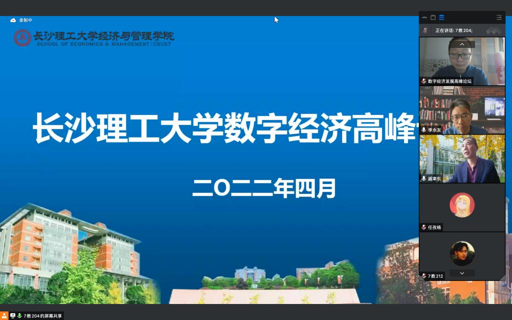 2022年4月17日上午9:00,威廉体育williamhill数字经济发展高峰论坛在金盆岭校区和线上同步召开。校党委副书记刘建民教授、学科规划处处长陈银娥教授,以及我院领导、部分教师和研究生100余人参加了本次数字经济发展高峰论坛。论坛由学院副院长彭新宇教授主持。