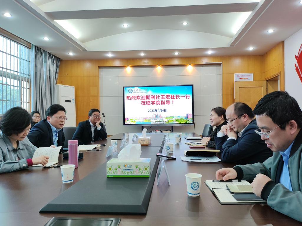 4月4日下午,校期刊中心王宏主任一行三人来我院就共建学术共同体,办好“高质量发展”栏目开展调研与交流。期刊社副社长兼社科版主编陈浩凯、副社长邓英、学院党委书记丁丹、副院长彭新宇(主持工作)、王治、刘坚和青年博士近27人参加了会议。
