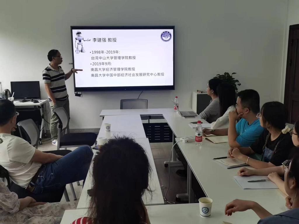 2023年5月20日下午,南昌大学经济管理学院李建强教授应邀来我院做了一场精彩的学术讲座,李教授的讲座主题是“中国数字经济对粮食安全的影响及空间溢出效应”以及“从国际期刊编辑工作的视角看英文论文写作与发表”。讲座由数字经济系主任胡尊国博士主持,相关领域的教师和研究生参加了讲座。