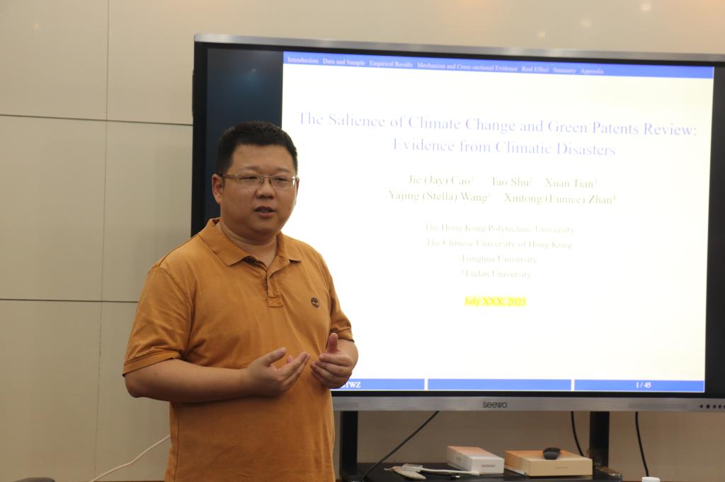 2025年7月23日下午,香港理工大学曹杰教授应邀在经管大楼307室讲座,主题为“The Salience of Climate Change and Green Patents Review: Evidence from Climatic Disasters”。院长彭新宇、学院青年教师和硕、博士研究生共30余人参加了本次讲座。讲座由彭新宇主持。