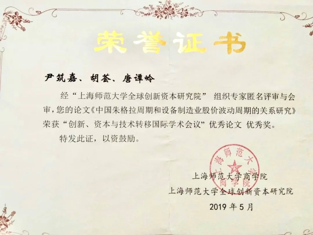 胡荟,经济与管理学院17级经济班学生。她发表论文两篇,包括:尹筑嘉,胡荟,唐谭岭. 中国朱格拉周期与股价波动关联性研究-基于奇异谱的设备制造业分析[J]. 上海财经大学学报,2019, 21(06): 18-34(CSSCI);YuY, HuH, ZhangY,etal. Metafrontier Eco-Efficiency and Its Convergence Analysis for China: A Multidimensional Heterogeneity Perspective [J].Emerging Markets Finance and Trade 2019:1-19.(SSCI)。参与国内学术会议两次:第五届能源与气候经济论坛学术会议;2018年度湖南省经济学学会研讨会,创新、资本与技术转移国际学术会议。论文获得省级奖励三次:2019年创新、资本与技术转移国际学术会议优秀论文奖(省级);2018年湖南省经济学会优秀论文一等奖(省级);2018年第五届能源与气候经济论坛优秀论文二等奖(省级)获得2019年荣获湖南省优秀毕业生称号(校级和省级)、2019年荣获优秀研究生称号(校级)、2017-2018年连续两年荣获一等学业奖学金(校级)、2019年荣获二等学业奖学金(校级)、2018年荣获党校优秀学员(校级)、2018年第二届文献精析大赛中荣获三等奖(院级)等个人荣誉:
