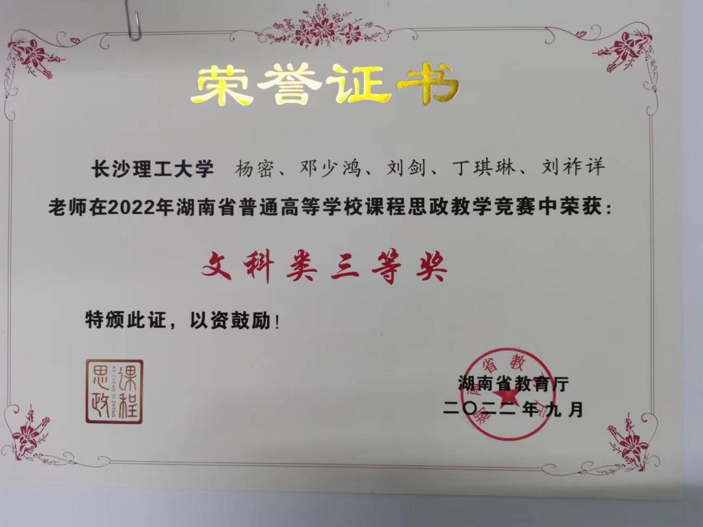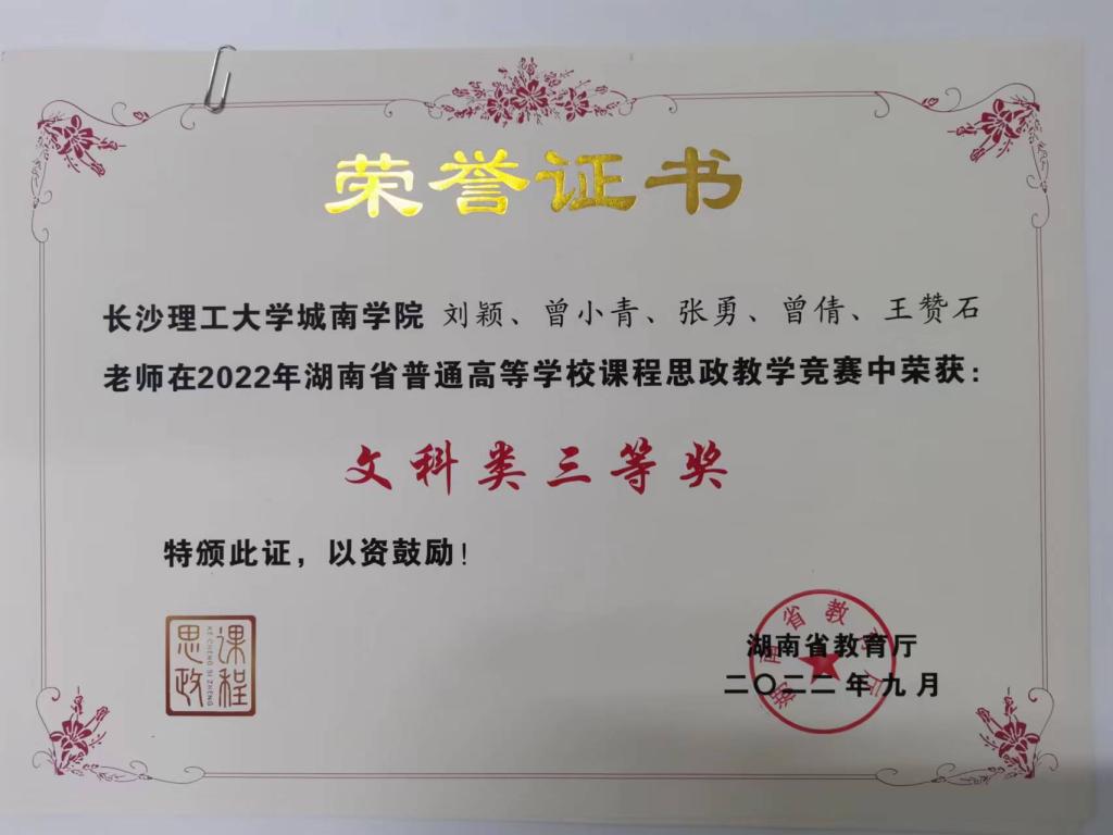 近期,湖南省教育厅发布的湘教通〔2022〕257 号文件,公布了2022年湖南省普通高校课程思政教学竞赛获奖名单,经管学院杨密团队、刘颖团队荣获文科组三等奖。
