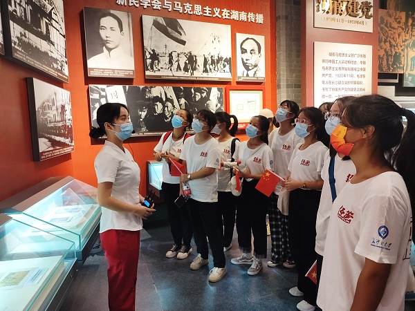 跟随陈列馆讲解员的步伐,湖南党史的脉络和细节清晰而生动的展现在大家眼前。党史陈列馆布展以“敢教日月换新天-中国共产党湖南历史陈列”为主题,以历史轴线为脉络,讲述了“开辟新天地——新民主主义革命时期”、“描绘新画卷——全面建设社会主义时期”、“谱写新篇章——改革开放时期”三个不同历史时期发生的重大事件,回顾了中国共产党带领广大湖湘儿女的奋斗历程,在场的师生们深刻感受了革命先烈追求理想、艰苦奋斗、不怕牺牲的革命精神。