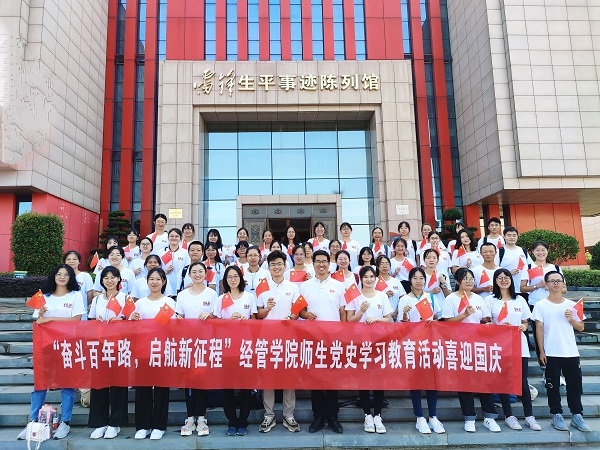 为庆祝中华人民共和国72岁华诞,激发学生爱国热情,加深学生对党史的了解,传承红色的基因。10月1日上午九点,经济与管理学院辅导员王宝宝、戴逢哲组织2021级50名本科生、研究生新生前往湖南省党史陈列馆进行参观学习。