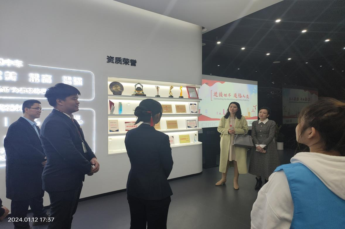 随后,团队一行来到株洲时代新材料科技股份有限公司进行参观,相关负责人介绍,时代新材的产品涵盖了高速列车、地铁、轻轨、有轨电车、货车、机车等多种类型,已累计申请专利数千项。通过参观,团队成员感受到时代新材注重人才培养,为员工提供丰富的职业发展机会,吸引了更多青年人选择在时代新材和株洲安居乐业,留住了更多青年人愿意为株洲的城市发展和经济建设添砖加瓦。