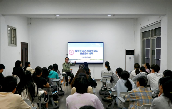 为帮助2026届本科毕业生合理把握就业形势,经济与管理学院于9月22日在经管大楼101开展了2026届毕业生第一次就业团体辅导。本次团体辅导由学院党委副书记汪功伟主讲,2022级辅导员叶鑫和50名学生参加活动。