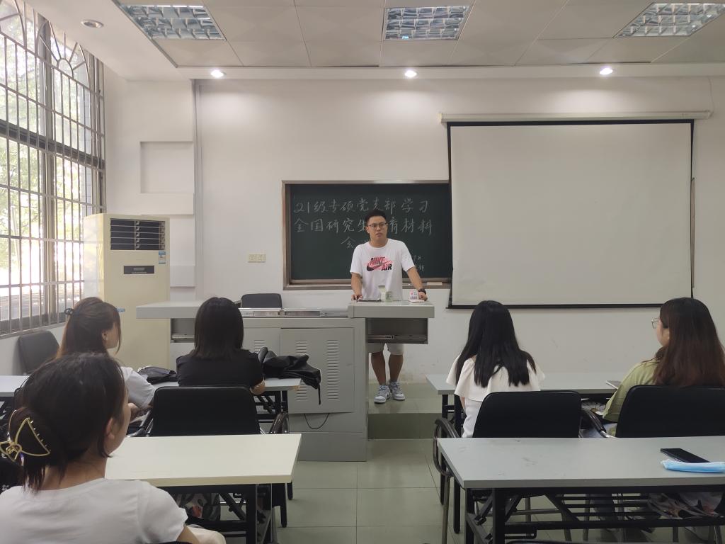 2021年9月9日上午,2021级经管研究生新生党支部学习贯彻2020年全国研究生教育会议精神大会在七教顺利召开。2021级全体党员参加了此次会议。