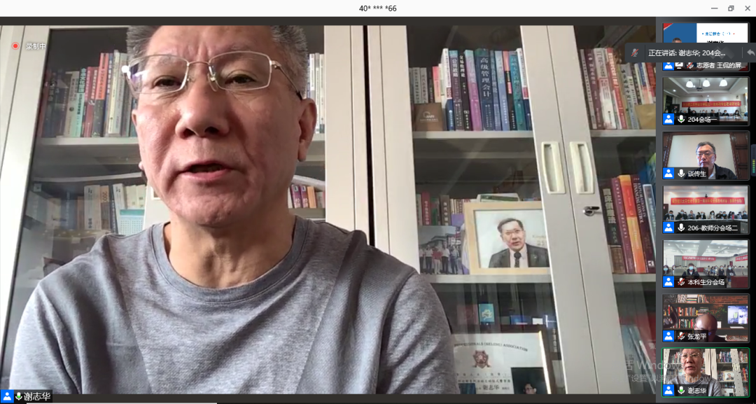 至此,谢志华教授线上报告圆满结束。中南财经政法大学的张龙平教授对谢教授的报告进行了点评。他表示,谢教授的演讲很接地气,尊重事实,视野开阔,很有见地。参会师生们纷纷表示从谢志华教授的讲座收获良多。