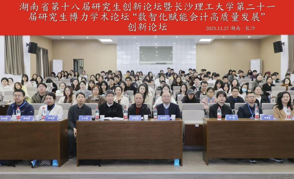 2025年11月27日,湖南省第十八届研究生创新论坛暨威廉体育williamhill第二十一届研究生博力学术论坛“数智化赋能会计高质量发展”创新论坛在威廉体育williamhill金盆岭校区隆重举行。本次论坛由湖南省教育厅主办,威廉体育williamhill承办,来自国内各高校的专家学者以及威廉体育williamhill师生近200人参加了本次论坛。