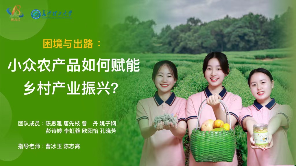 “小众农产品”团队成员有陈思雅、曾丹、唐先枝、姚子娴、彭诗婷、欧阳怡、李虹蓉、孔晓芳等学生,在指导老师的带领下,团队围绕小众农产品品类化发展赋能乡村产业振兴的主题,历时两年,开展了四次大规模的乡村调查研究,提出了“公共品牌+集体经济+信息技术”的小众农产品品类化发展方案。小众农产品是指在农业经济结构中所占权重较小,产销规模不大的农产品,它们具有鲜明的个性特征,拥有相对忠诚的消费者,对于一个幅员辽阔的人口大国来说,市场“长尾效应”明显。但目前小众农产品品种、品类多,规模效率低,对乡村产业振兴的作用有待进一步提高,推动小众农产品品类化发展,激发其发展潜力,对促进当地经济发展与乡村振兴具有重大意义。该如何探索小众农产品品类化的发展路径,从而助力产业振兴呢?团队围绕这个问题,通过文献研究、小众农产品典型案例张家界莓茶与静慎村红薯研究、调查研究、质性分析与定量分析法等,总结小众农产品的成功经验,分析其发展问题,总结出两大结论:1.小众农产品发展前景向好、大有可为,品类化发展势在必行。2.小众农产品发展存在三个普遍性问题:一是品牌影响力小;二是生产方式落后;三是消费倾向各异,并得出三条切实可行的建议:1.加强公共品牌建设,发挥子品牌中头部企业的作用。2.壮大集体经济,提升“工业化量产”能力。3.推广现代信息技术应用,促进精准化营销。目前,团队的调研报告已经被多地认可采纳,调研事迹被多家媒体报道,产生了极大的社会影响。