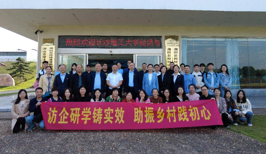 10月21日,企业管理系教工党支部组织支部党员、教师、学生代表前往湘阴县樟树港镇开展主题党日活动。经管学院党委副书记唐青、企管系支部书记李祝平、系主任唐文彬以及40余名师生参观了阳雀湖农业集团湘阴示范基地,并与镇领导和企业员工座谈交流。樟树镇党委书记甘滋、阳雀湖农业集团董事长曾立宇、总经理周鑫出席了活动。