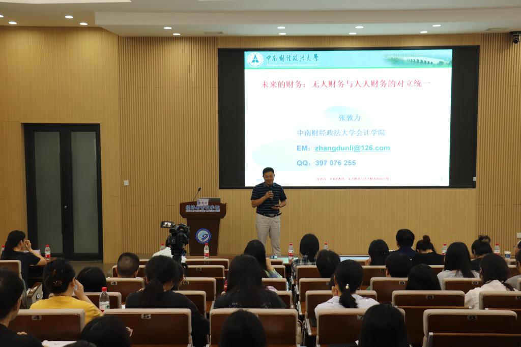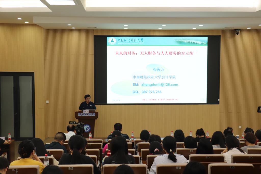 2025年5月16日下午,由中国会计学会、全国会计专业学位硕士研究生教育指导委员会主办,威廉体育williamhill经济与管理学院承办的“MPAcc会计名家公益大讲堂”在金盆岭校区经管大楼100报告厅举行。本次大讲堂邀请到中南财经政法大学张敦力教授,围绕“财务的未来:无人财务与人人财务的对立统一”展开深入探讨。经济与管理学院院长彭新宇及140余名师生参加了本次讲座,讲座由学院副院长王治主持。